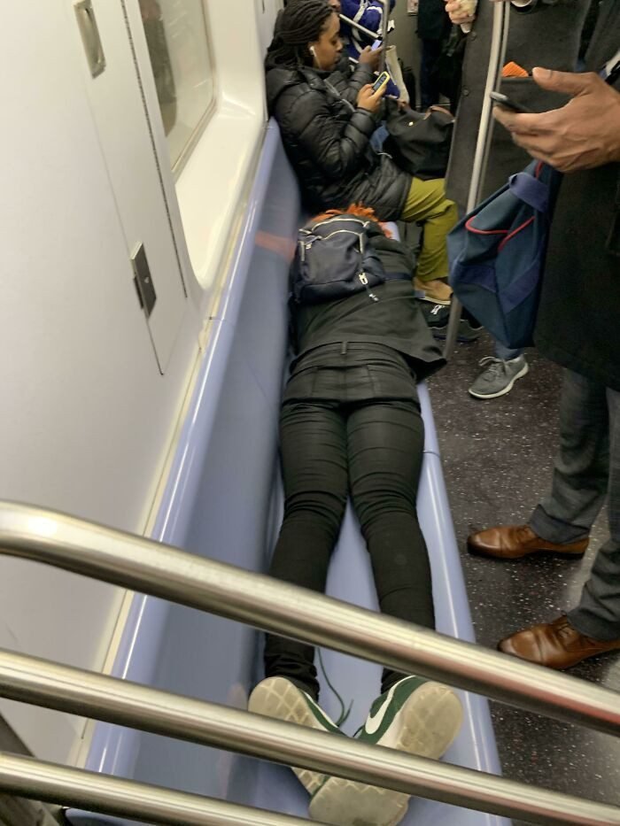 4 – Egoísmo é quando alguém ocupa vários assentos no transporte público em horário de pico
