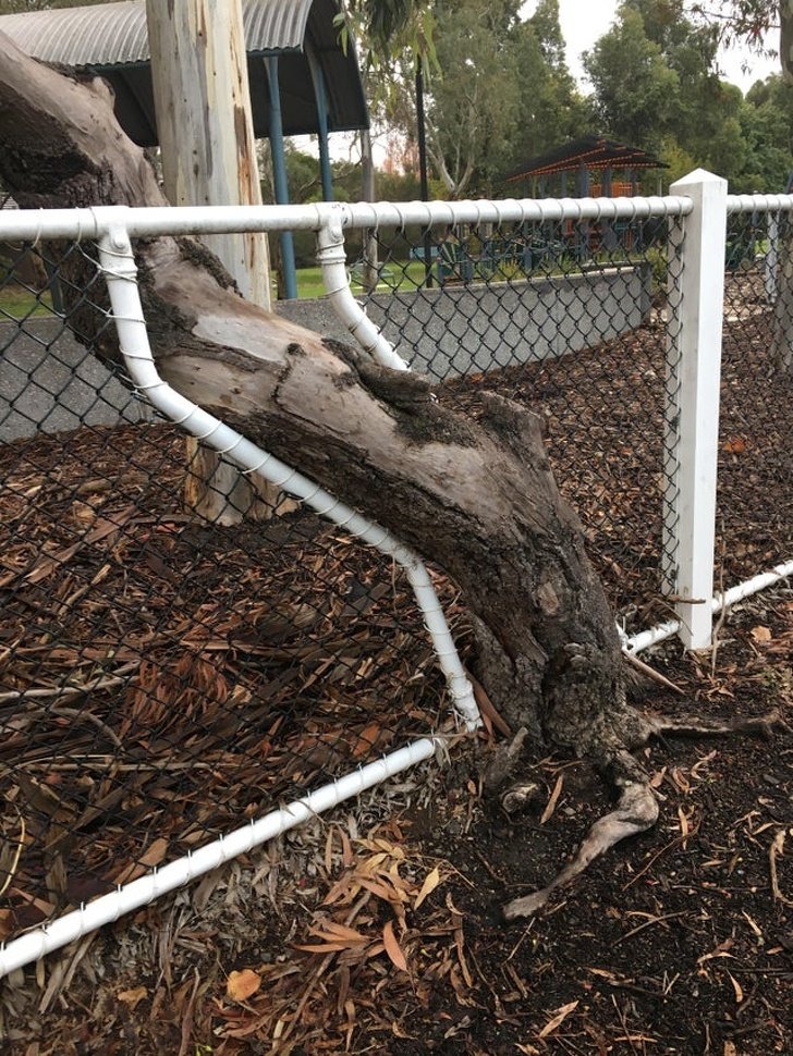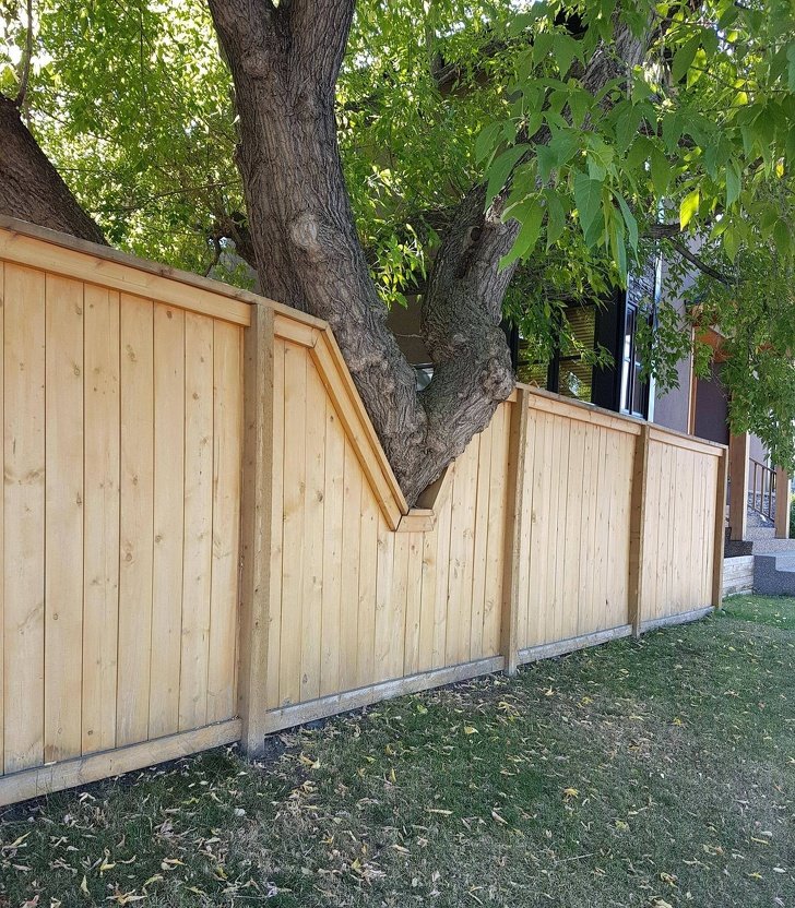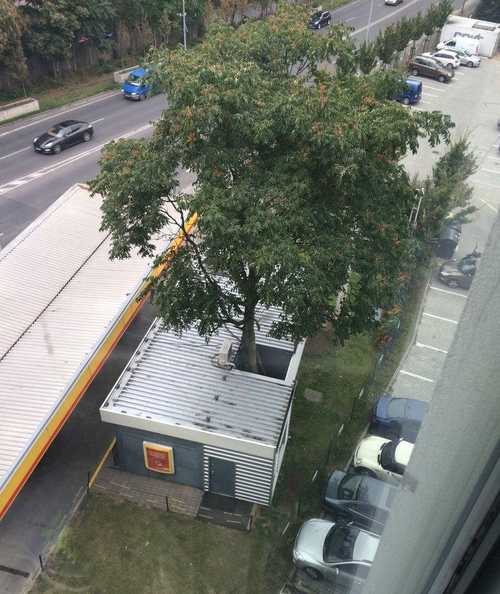 Algumas fotos mostram que invés das pessoas cortarem as árvores, elas aproveitaram as árvores, um mercado fez questão de não cortar a árvore, por incrível que pareça, o mercado resolveu deixar ela lá, dando um toque especial para o mercado e mostrando o respeito pela natureza.