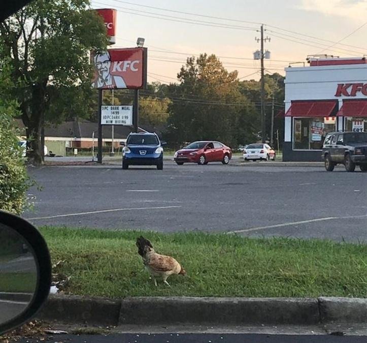 3. Alguém precisa dizer para esta galinha que ela deve ir embora dali com urgência.