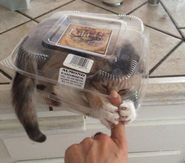18. Esse gatinho ganhou uma casinha nova e mesmo assim ele prefere essa caixa.