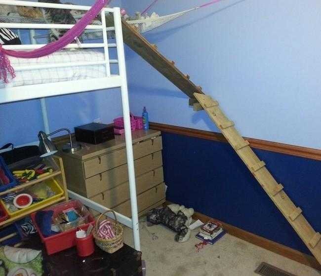 12 – “Minha filha estava dormindo no chão porque seu gato deficiente não conseguiu alcançar a cama. Eu deixei a cama dela acessível para gatos”