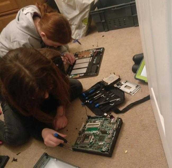 17 – Essas meninas estavam entediadas, então o pai delas resolveu desmontar computadores para elas montarem novamente