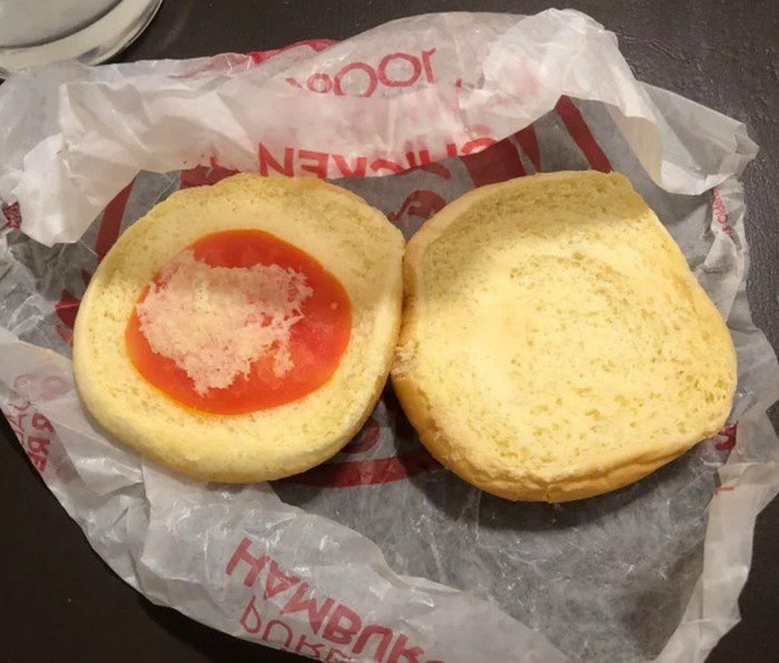 13 – “Pedi um cheeseburger de bacon sem tomate. Só tem tomate”