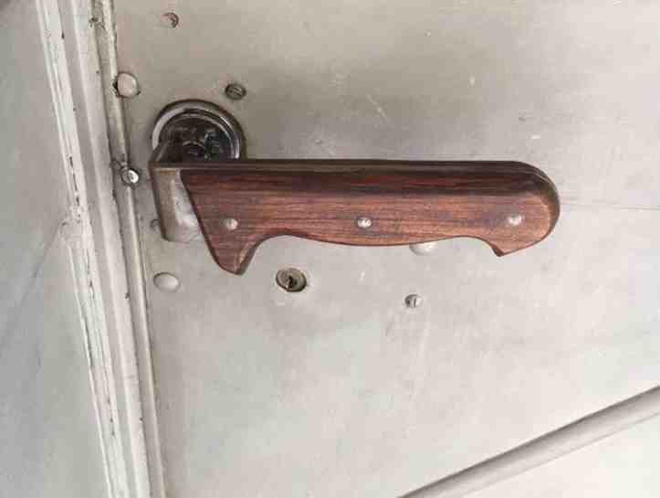2. Maçaneta de uma loja de facas que não poderia ser mais sugestiva.