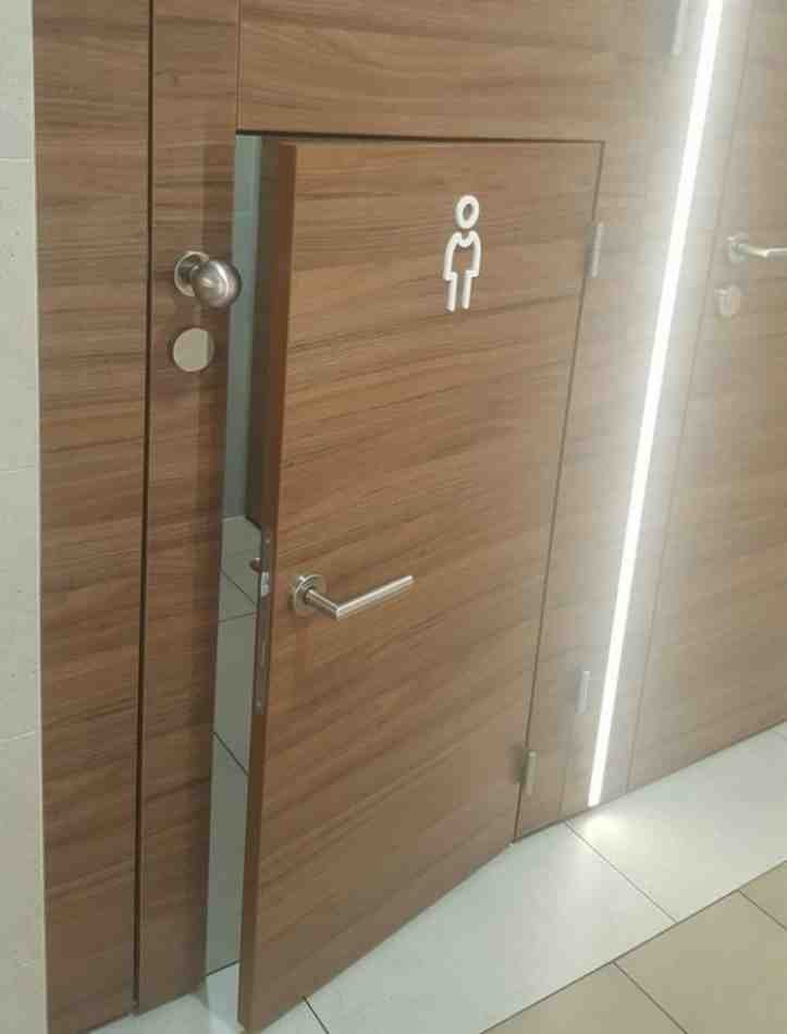 4. Uma porta de banheiro com uma miniporta para crianças.
