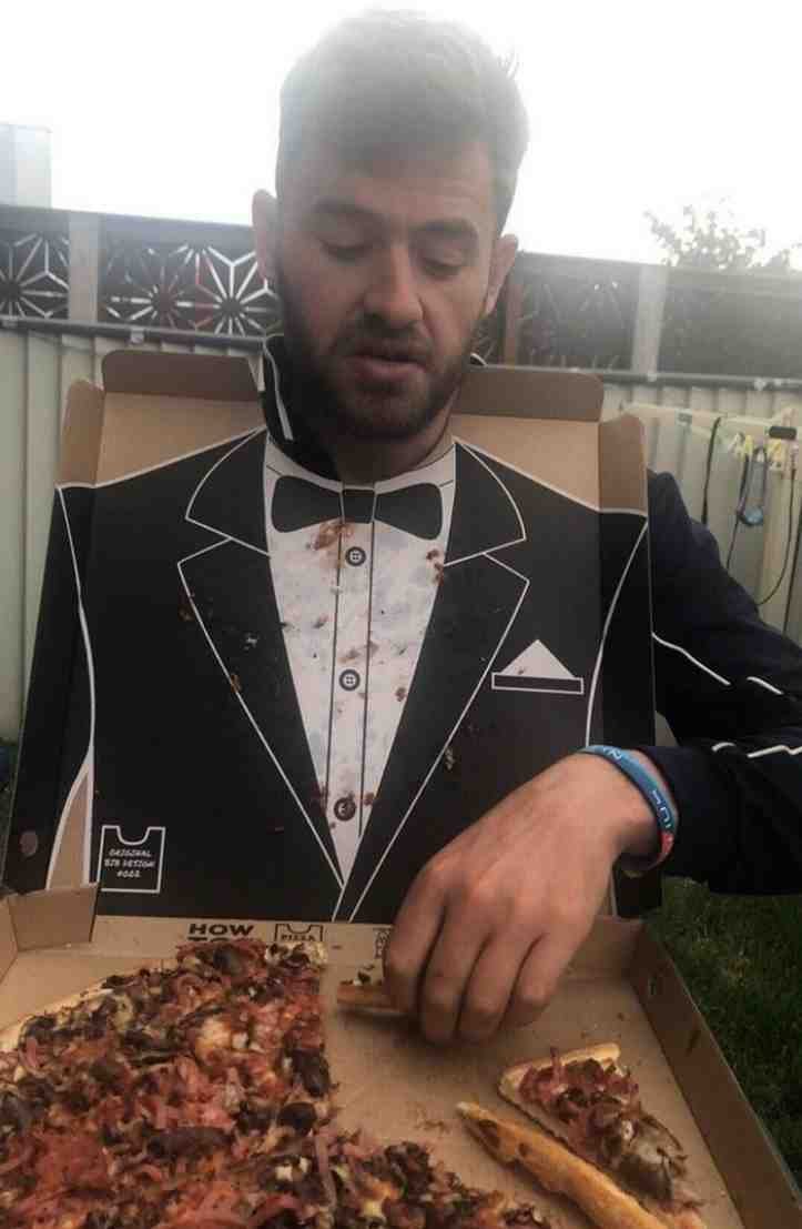 8. O interior da caixa de pizza esconde um smoking.