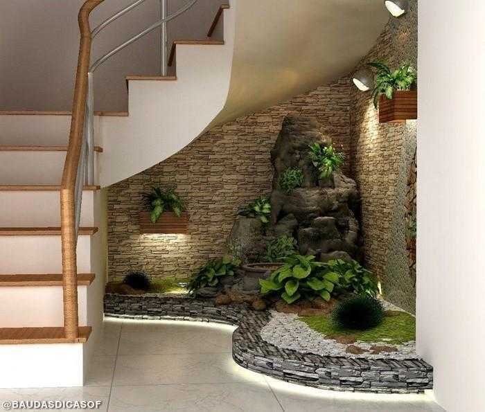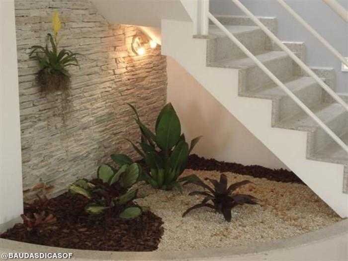 Nada como umjardim de invernonas salas, aproveitando vãos abaixo dasescadasou de outra forma, para manter o ambiente aconchegante e mais próximo da natureza.