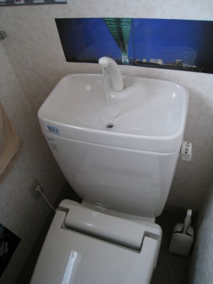 4. Muitos banheiros têm pias anexadas aos tanques para economizar água.