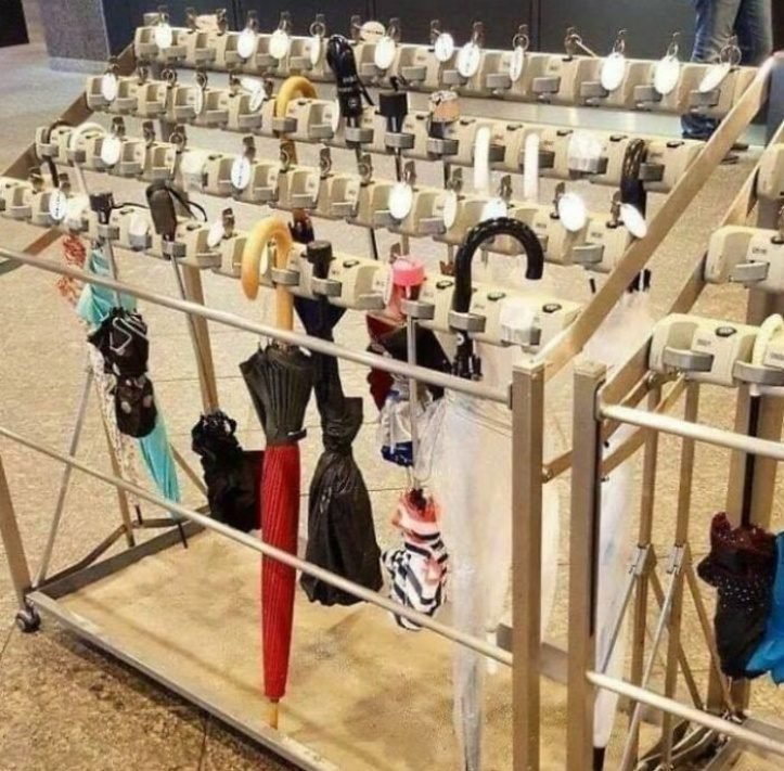 21. É comum e às vezes necessário deixar seu guarda-chuva do lado de fora em um suporte.