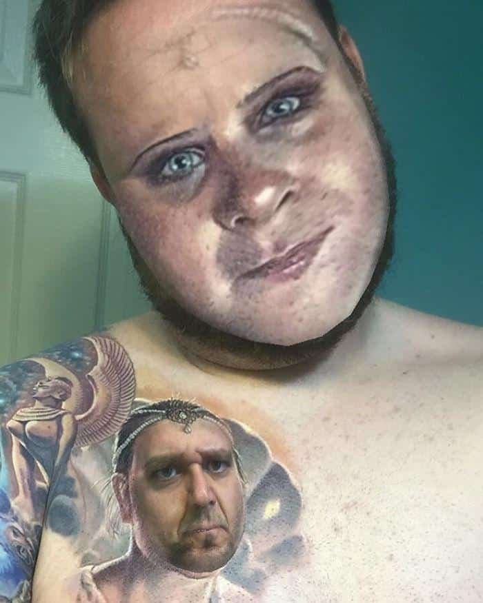 Porém algumas pessoas que são apaixonadas por tatuagens decidiram fazer esta mesma brincadeira, mas usando as tatuagens para trocarem os rostos com elas, o resultado é pode até ser assustador em alguns casos, mas sem sombra de dúvidas é bastante divertido.