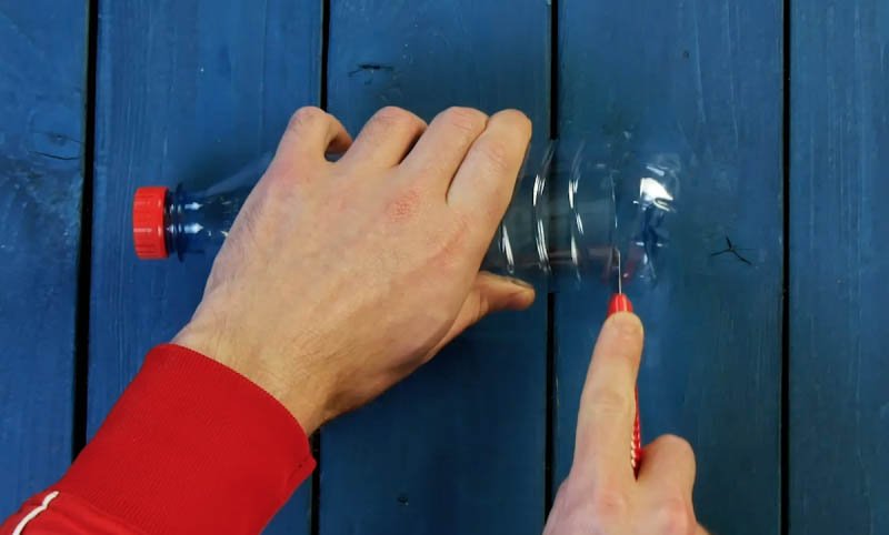 1.3. Faça mais 5 furos na parte de trás da garrafa.