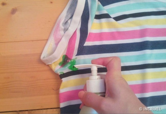Isso vai funcionar como um “peeling” na superfície do tecido e, quando você lavar a roupa manchada, vai perceber que a mancha estará, no mínimo, mais clara.