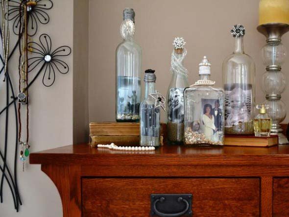 E abaixo vocês conferem mais algumas imagens de artesanato DIY com garrafas de vidro, que vão lhes trazer muitas ideias para seus trabalhos manuais:
