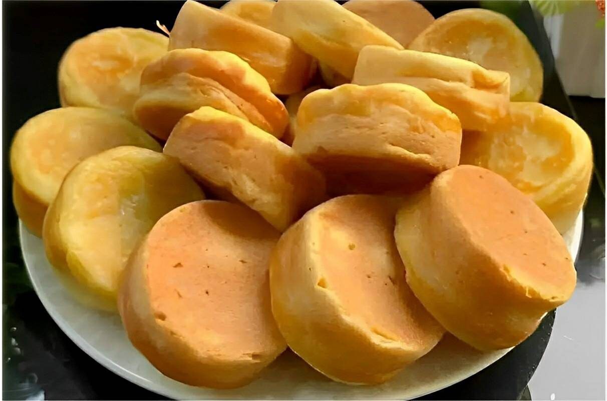 Quando a parte de baixo se soltar e furinhos aparecerem na parte de cima, remova os aros com cuidado, pois estão quentes, e vire os barrigudinhos para dourar do outro lado.