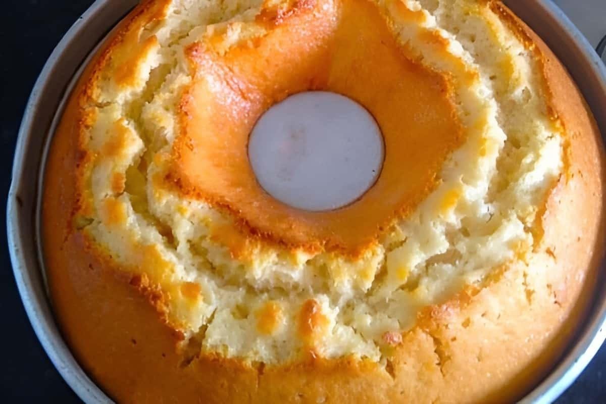 Despeja a massa numa forma (23 cm de diâmetro) de furo central, untada e enfarinhada. Asse em forno médio pré-aquecido a 180°C por, aproximadamente, 40 minutos.