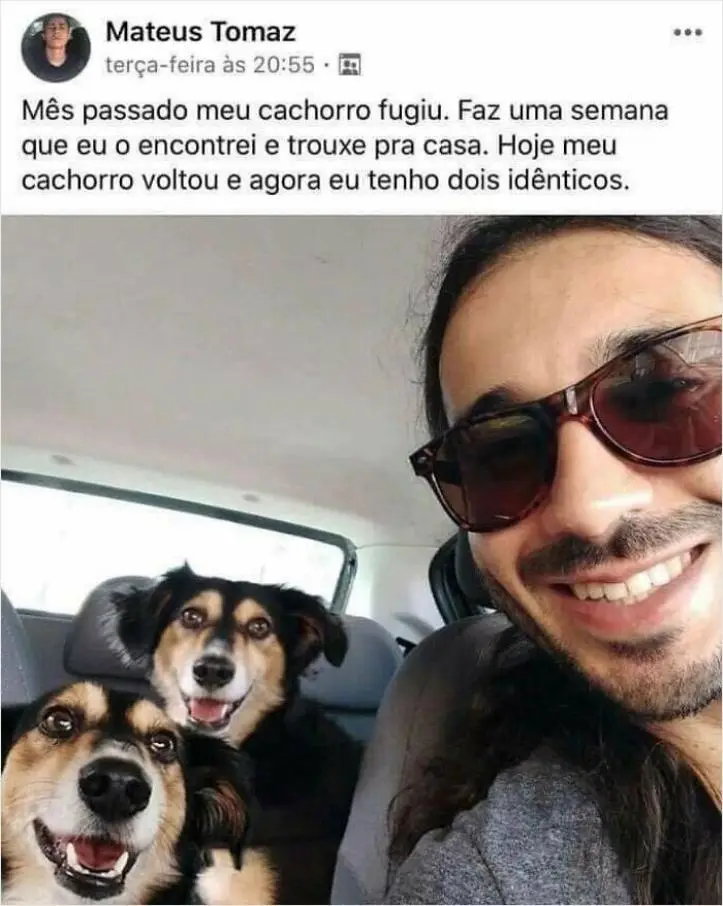 26. Meu cachorro voltou e agora eu tenho dois iguais.