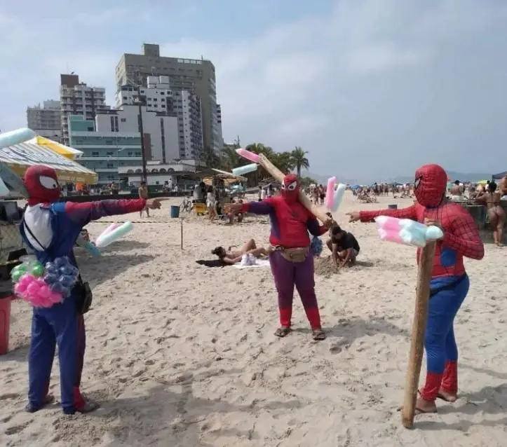 7. No Brasil podemos comprar algodão-doce na praia com super-heróis.