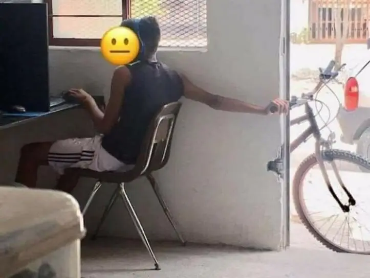 2. Enquanto isso numa lan house… o medo de ter a bicicleta roubada não atrapalhou este garoto de usar o computador.