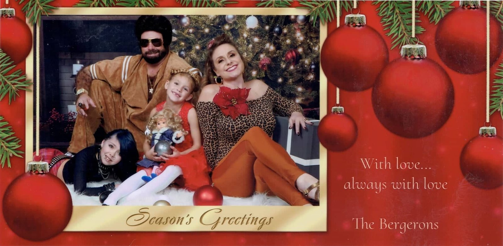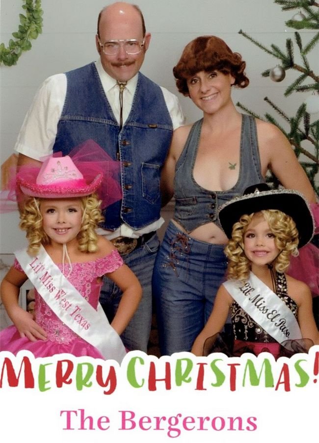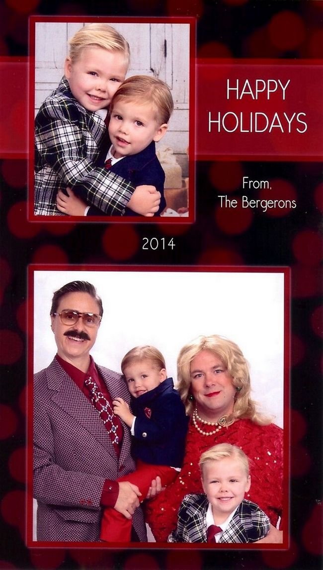 A famíliaBergeron tem senso de humor para dar e vender. Nos últimos 18 anos, os Bergerons criaram cartões de Natal bem engraçados para seus conhecidos.