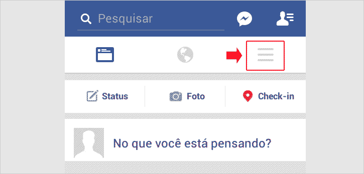 Passo 2 – Estando na linha do tempo de sua conta do Facebook, clique à direita parte superior no ícone de três barrinhas para acessar o menu.