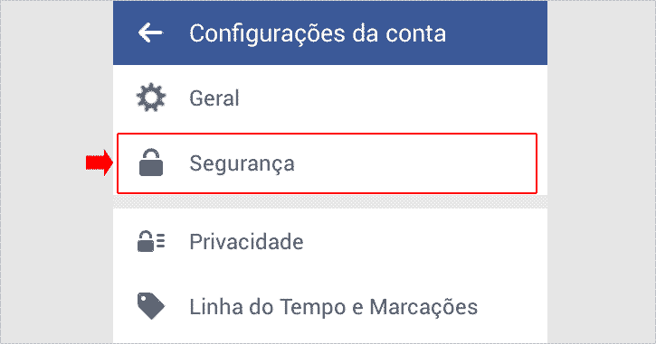 Passo 4 – Em Configurações da conta, toque na opção Segurança.