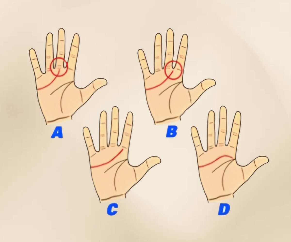 Se a linha do coração passa por baixo do dedo indicador, você tem características semelhantes ao tipo de personalidade ‘A’. Sua persistência, coragem e determinação são suas principais características, você desiste fácil do que quer.
