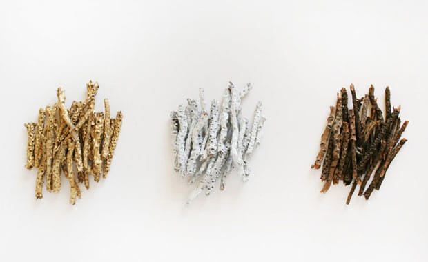 Para isso, usa uma folha de jornal por baixo, para não sujares o teu espaço de trabalho de pinta os galhos. Deixa secar bem.