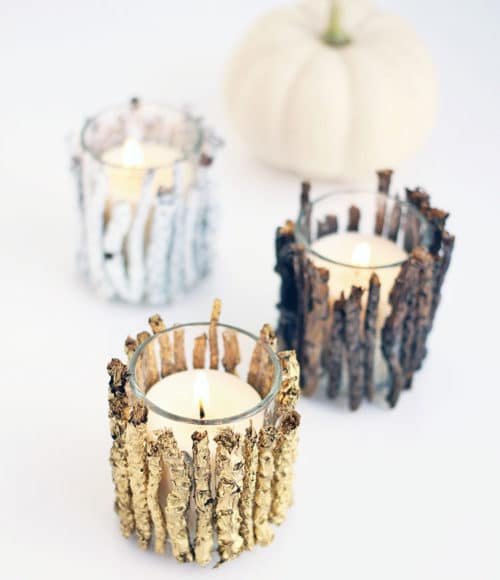 Depois, basta colares com cola quente, os galhos no frasco de vidro, onde colocarás a vela.