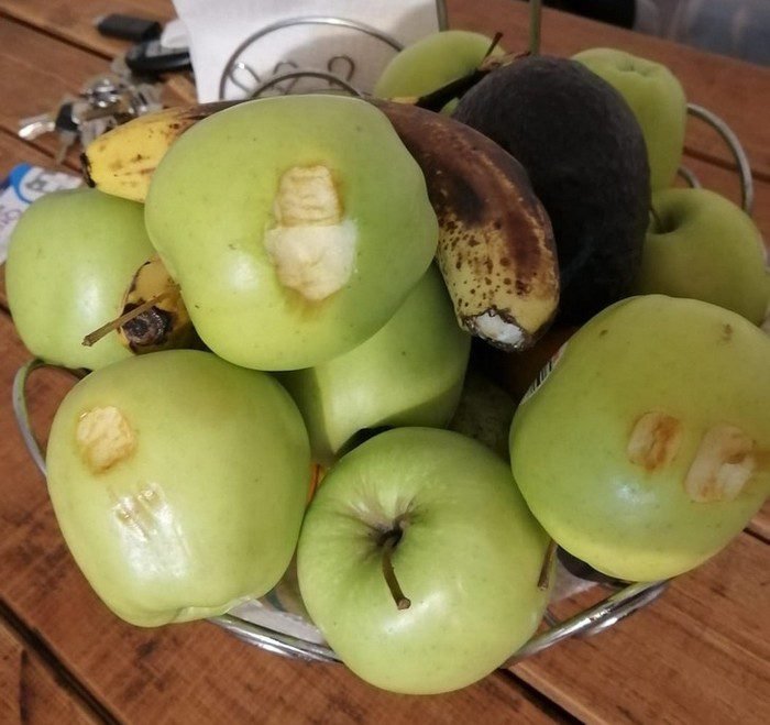 16 – Quando o seu sobrinho tem o estranho hobby de morder um pouco de cada fruta