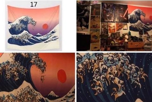 8 –“Eu pedi um tapete de parede da Wish e a foto para escolher o design era super pequena. Ele veio pelo correio hoje e eu levei 2 horas para perceber que é feito de PUGS! ”
