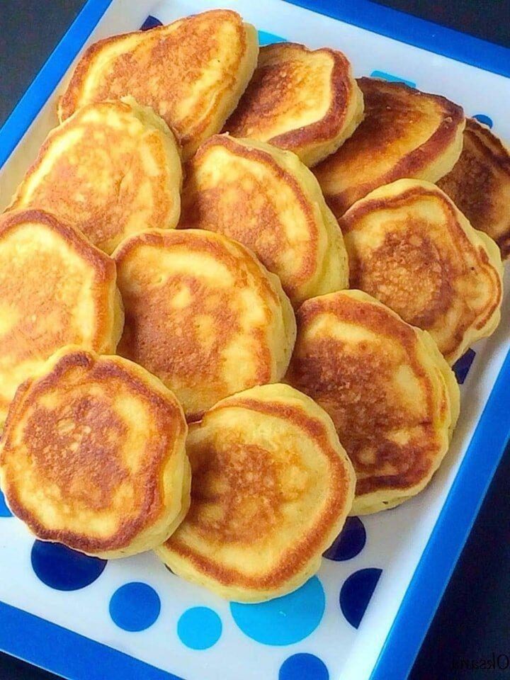- Aqueça e unte a frigideira com óleo, coloque a massa no centro, cerca de 1/4 xícara por panqueca.