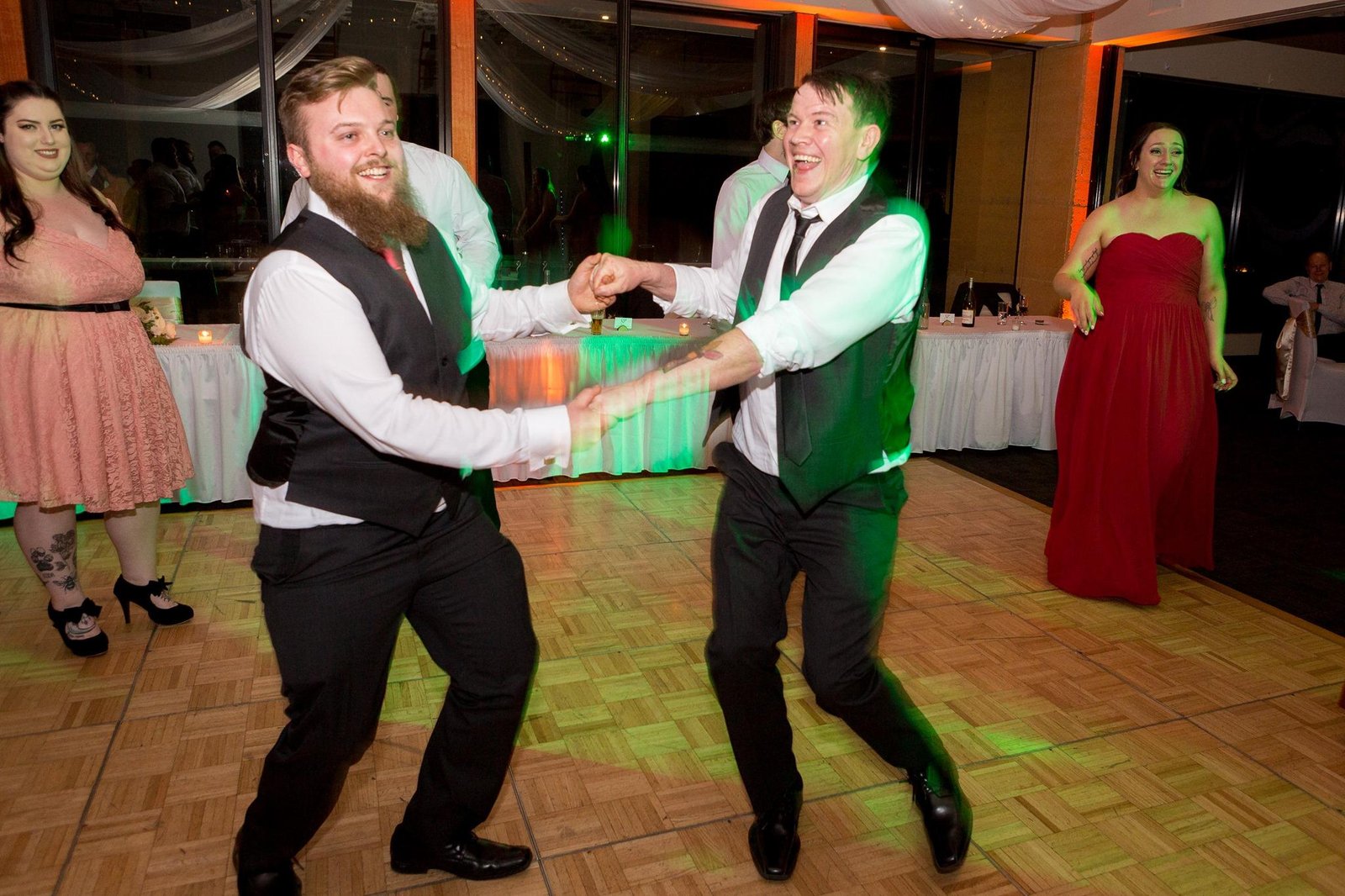 Mas quando ele começou a chorar, percebi que ele era como qualquer outro bebê“, relata. O noivo Tomm (à direita) dança no casamento.