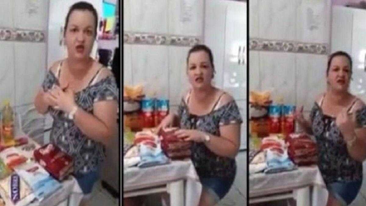 Um vídeo que circula nas redes sociais tem causado revolta nos internautas. Na gravação surge uma dona de casa, contemplada com a doação de uma cesta básica.
