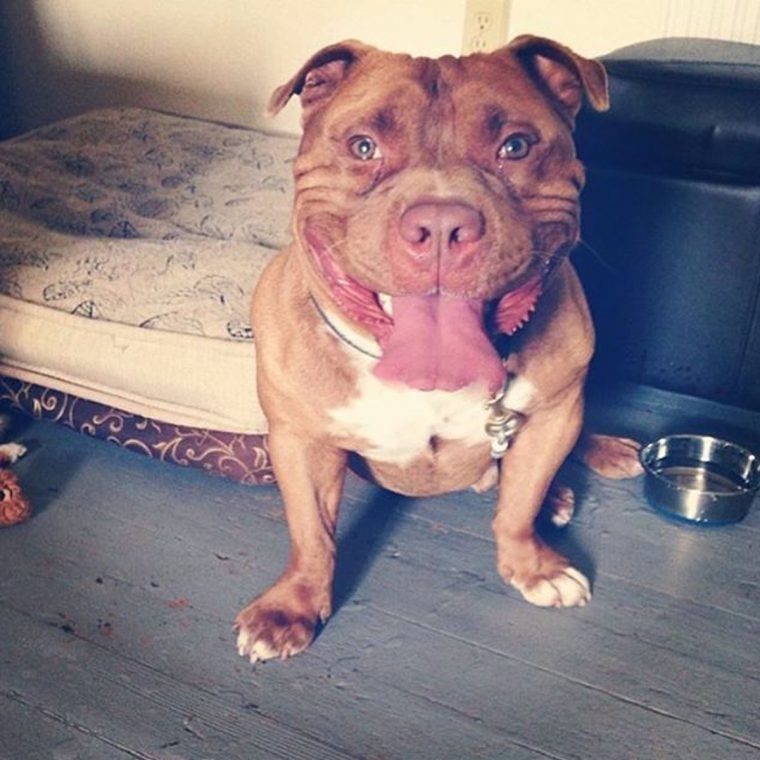 Lisa Reilly viu-o na página da Fresno Bully Rescue e se apaixonou. Logo decidiu que ele se deveria juntar à família.