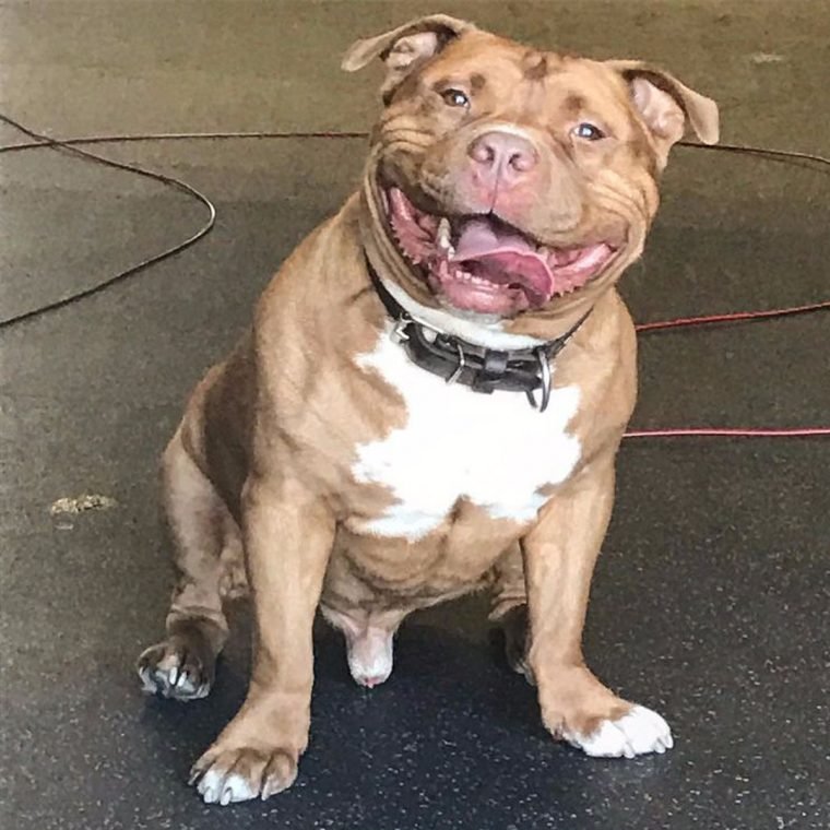 Esse patudo é proveniente de um cruzamento um Bulldog Inglês e um Pit Bull