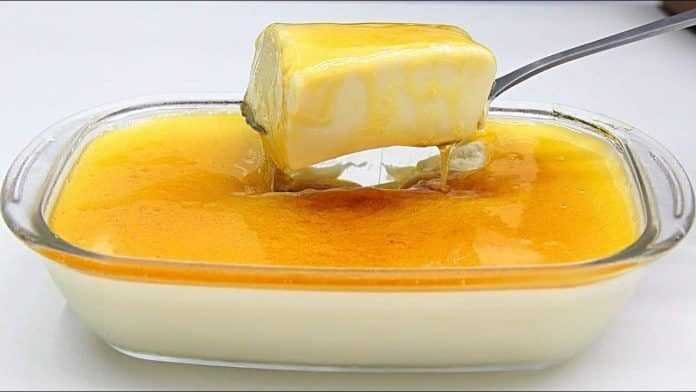 Modo de preparo do Pudim na travessa sem ovos