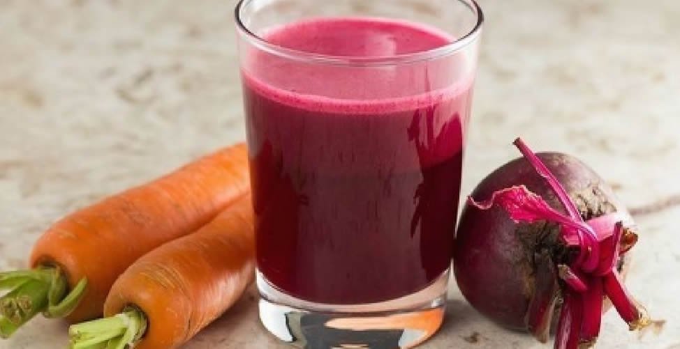 Corte a beterraba em rodelas e bata no liquidificador com um pouco de água. Misture bem e passe na peneira.
