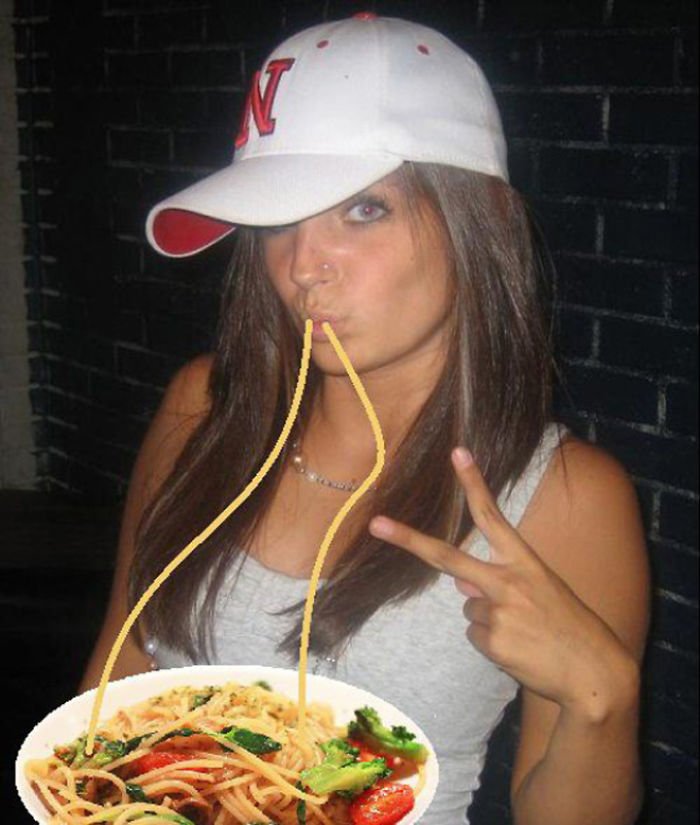 Na verdade, agora eles fazem. Notaram que, se você coloca uma enorme tigela de espaguete, a foto não ficará mais tão ruim assim.