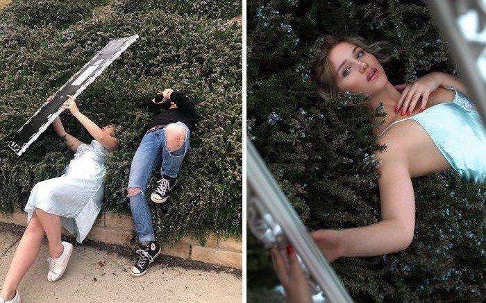 As imagens abaixo, por exemplo, são de pessoas que quiseram comparar os bastidores e os resultados de suas fotografias, e mostram que não é preciso ter equipamentos sofisticados para tirar boas fotos, basta ser criativo e ter boas ideias.