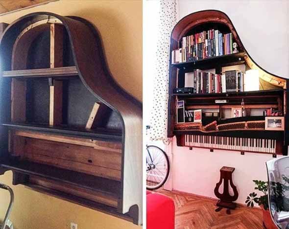 Desta forma dá para transformar cada um destes objetos antigos em móveis práticos, e muito funcionais para vocês terem em casa.