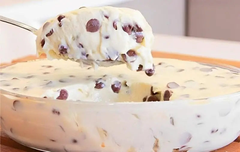 Em seguida retire o plástico filme, e misture delicadamente as gotas de chocolate, caso queira utilizá-las. E está pronto!